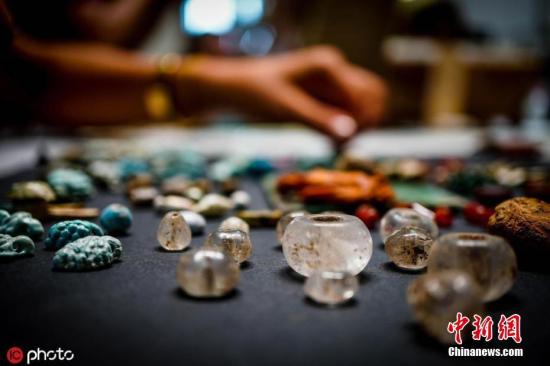 考古学家在一个木箱内发现这个“宝盒”。木盒本身已经腐烂,仅剩下盒上的青铜锁链大致完好。宝盒内有许多水晶、陶瓷、紫水晶和琥珀等多种珍贵宝石。