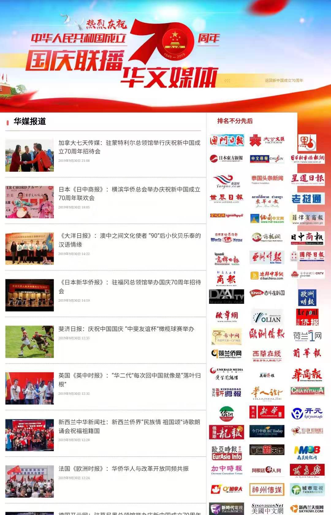 华人社区活动精选时事 【看国庆】比利时“维他命B”联手全球百家华文新媒体超长网络大联播 30 9 月, 2019 70年砥砺奋进,70年波澜壮阔。为了向全球华侨华人充分展示庆祝活动盛况,中新网联合全球百家华文新媒体进行24小时实时直播报道, 24小时滚动直播的专题页面正式上线啦! 比利时首家华文新媒体 维他命B(隶属维他命文化传煤)携手全球同行借中国新闻社的强大平台发布最新的庆祝消息,敬请关注! 全球华文新媒体24小时联播直播:点击图片直接进入页面
