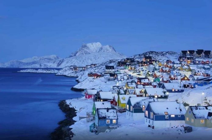 也许是白茫茫的大地实在太过“朴素”,又或者是一种乐趣,努克的木屋都是五颜六色的,远处积雪覆盖的山峰为努克提供了美妙的背景,远远望过去就像是一副处在世界尽头的童话小镇的画作,契合的是如此的自然。