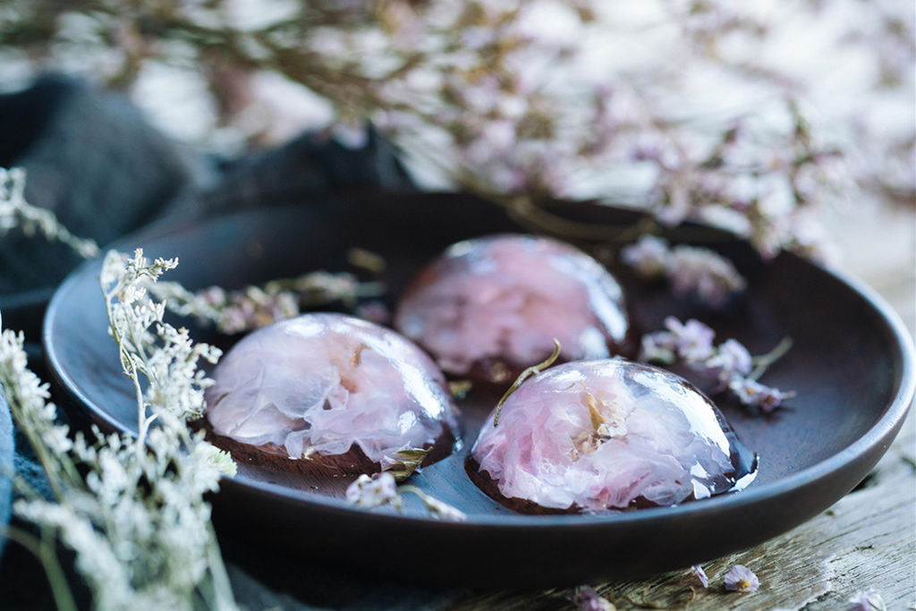 初听这个名字的时候我就觉得也太好听了吧,直到看到它的真面目我再一次感叹:也太好看了吧!虽然叫“饼”,其实更偏向果冻。这款甜品的外观晶莹剔透,就跟一滴水滴似的,可以说是一款“高颜值”的甜品了。里面的点缀食物并不局限于盐渍樱花一种,商家常常会做出各式各样“内涵”的水信玄饼以供顾客自行挑选,味道也都不差哦~