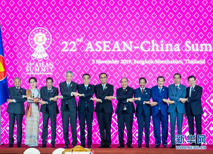 11月3日上午,国务院总理李克强在泰国曼谷出席第22次中国-东盟(10+1)领导人会议。这是与会领导人集体合影。(图源:新华社)