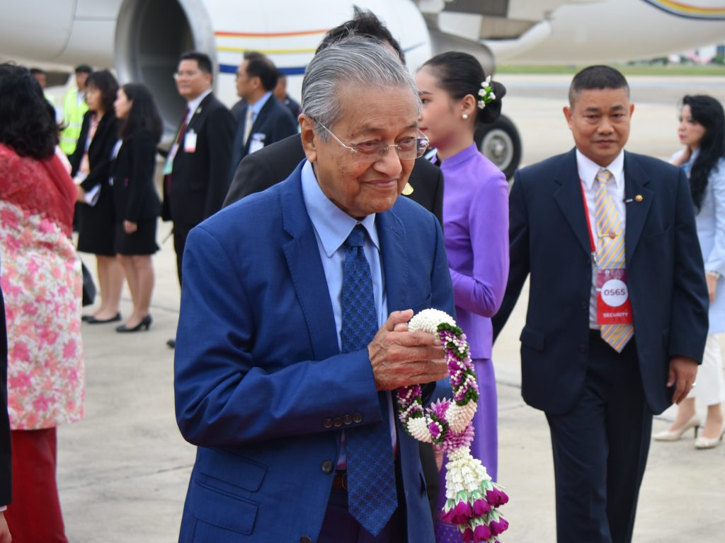(中华时报讯)记者晓港曼谷报道:2019年11月1日,马来西亚总理马哈蒂尔·穆罕默德抵达曼谷参加2019年11月2日至4日举行的第35届东盟峰会及相关峰会,受到泰国教育部长纳塔普霍尔·蒂普苏万先生阁下的接机。