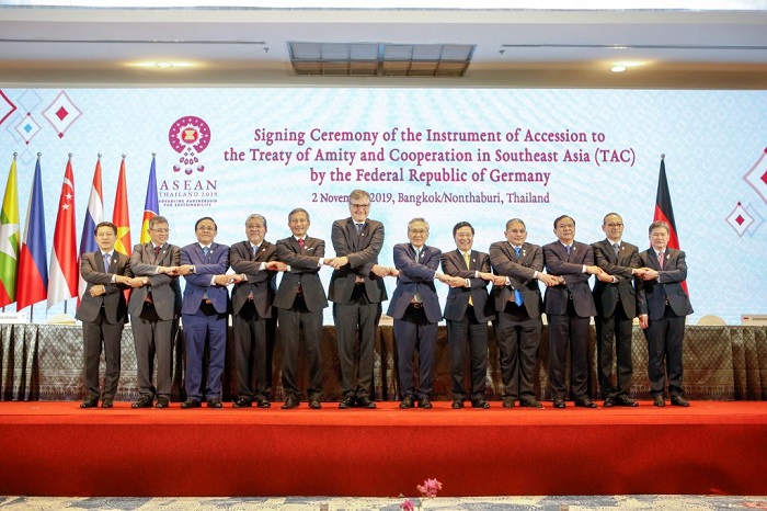 分类 国际 巴林与德国签署《东南亚友好合作条约》(TAC)签署仪式 文章作者 中时 发布日期 2019年11月2日 巴林与德国签署《东南亚友好合作条约》(TAC)签署仪式无评论 (中华时报讯)记者晓港曼谷报道:2019年11月2日,巴林王国外交大臣谢赫·哈立德·本·艾哈迈德·本·穆罕默德·哈利法阁下和德意志联邦共和国驻印度尼西亚,东盟和东帝汶特命全权大使彼得·肖夫先生阁下在第35届东盟峰会及相关峰会上签署了《东南亚友好合作条约加入文书》。 标签 巴林王国, 第35届东盟峰会 ← 印度尼西亚共和国总统约科·维多多和配偶抵达曼谷 → 印度共和国总理纳伦德拉·莫迪先生阁下抵达曼谷 发表回复您的邮箱地址不会被公开。 必填项已用 * 标注评论 * 显示名称 邮箱 网站 在此浏览器中保存我的显示名称、邮箱地址和网站地址,以便下次评论时使用。