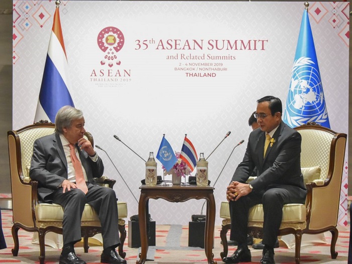 (中华时报讯)记者晓港曼谷报道:2019年11月2日,在第35届东盟峰会及相关峰会上,泰国王国首相普赖特·尚奥查会见了联合国秘书长安东尼奥·古特雷斯先生。古特雷斯先生感谢泰国支持联合国和多边合作,特别是泰国作为东盟主席推动《 2030年议程》发挥作用。总理和联合国秘书长的各种问题,如气候变化,可持续发展,环境和泰国同联合国的伙伴关系,以及2020年联合国庆祝75周年纪念日75交换了意见。