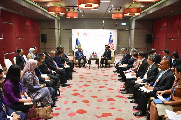 (中华时报讯)记者晓港曼谷报道:2019年11月2日,在第35届东盟峰会及相关峰会期间,泰国王国首相普赖特·尚奥查将军与马来西亚总理敦马哈迪·本·穆罕默德博士阁下举行了双边会议,加强双边关系并讨论在各个合作领域的进展,特别是在促进连通性方面,包括连接CIQ Sadao – ICQS Bukit Kayu Hitam的道路路线,沿泰马来西亚边境的发展,边境安全和双边贸易。