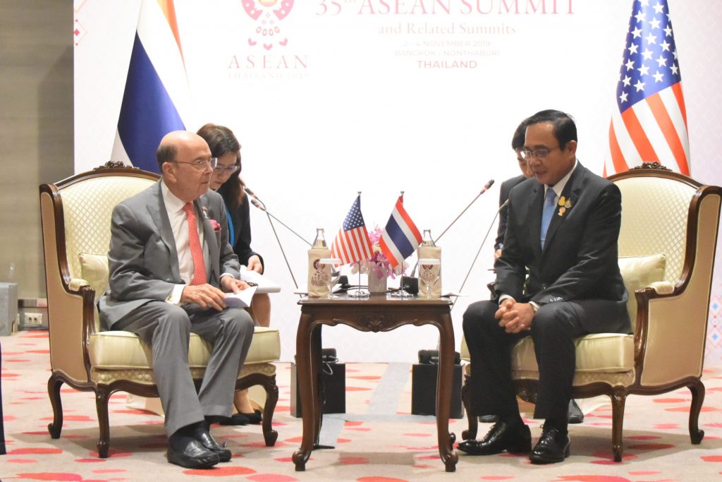 (中华时报讯)记者晓港曼谷报道:2019年11月3日,美国商务部长威尔伯·罗斯拜会了泰国总理巴育,然后出席于2019年11月4日在第35届东盟峰会及相关峰会期间举行的第二届印太平洋商业论坛。