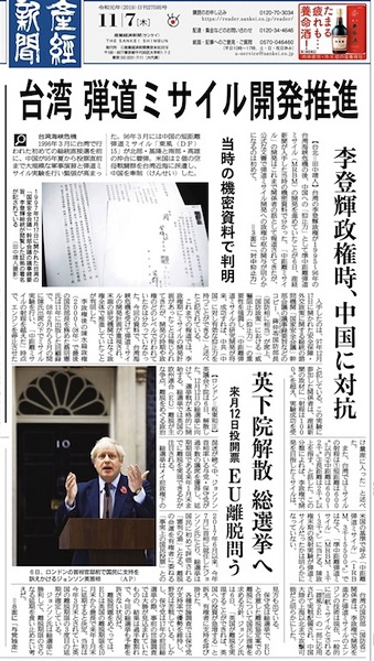 日本产经新闻7日以头版头条报道,受到1996年台海危机的影响,为了对抗中国,台湾前总统李登辉执政时期曾经推动研发准中程弹道导弹(MRBM)。