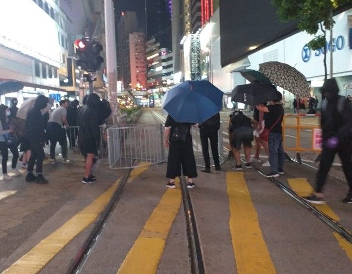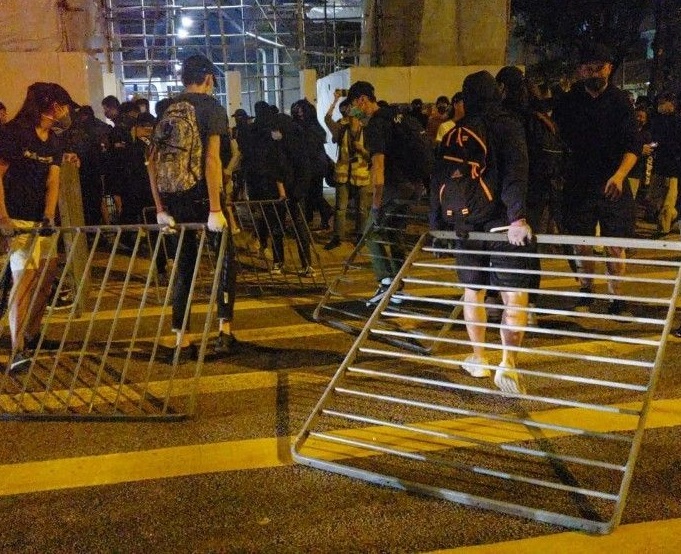 晚上十时半,将军澳唐明街有示威者堵路,元朗大马路、荃湾沙咀道及沙田大涌桥路等亦有人设路障,多区交通陷瘫痪。在将军澳唐明街宣基中学对开行人路有路边电箱起火,期间传出多次爆炸声,未几唐明街及唐俊街漆黑一片,疑似大停电。港铁则于晚上约九时起陆续宣布沙田站、马鞍山站、荃湾站、旺角站、黄埔站、西湾河站和铜锣湾站等站关闭,而轻铁更于十时四十二分全线停止服务。