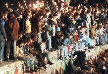 但对东德人来说,近在咫尺的西柏林却成了遥不可及的向往之地。直到1989年11月9日,电视直播的一场在东柏林举行的新闻发布会上,东德政府宣布了新的旅行法。新法允许公民从东柏林自由出境–而且即刻生效!成千上万东德人涌向东柏林市内由军人守卫的各个出入境关卡,几小时后,这些关卡真的被打开了。