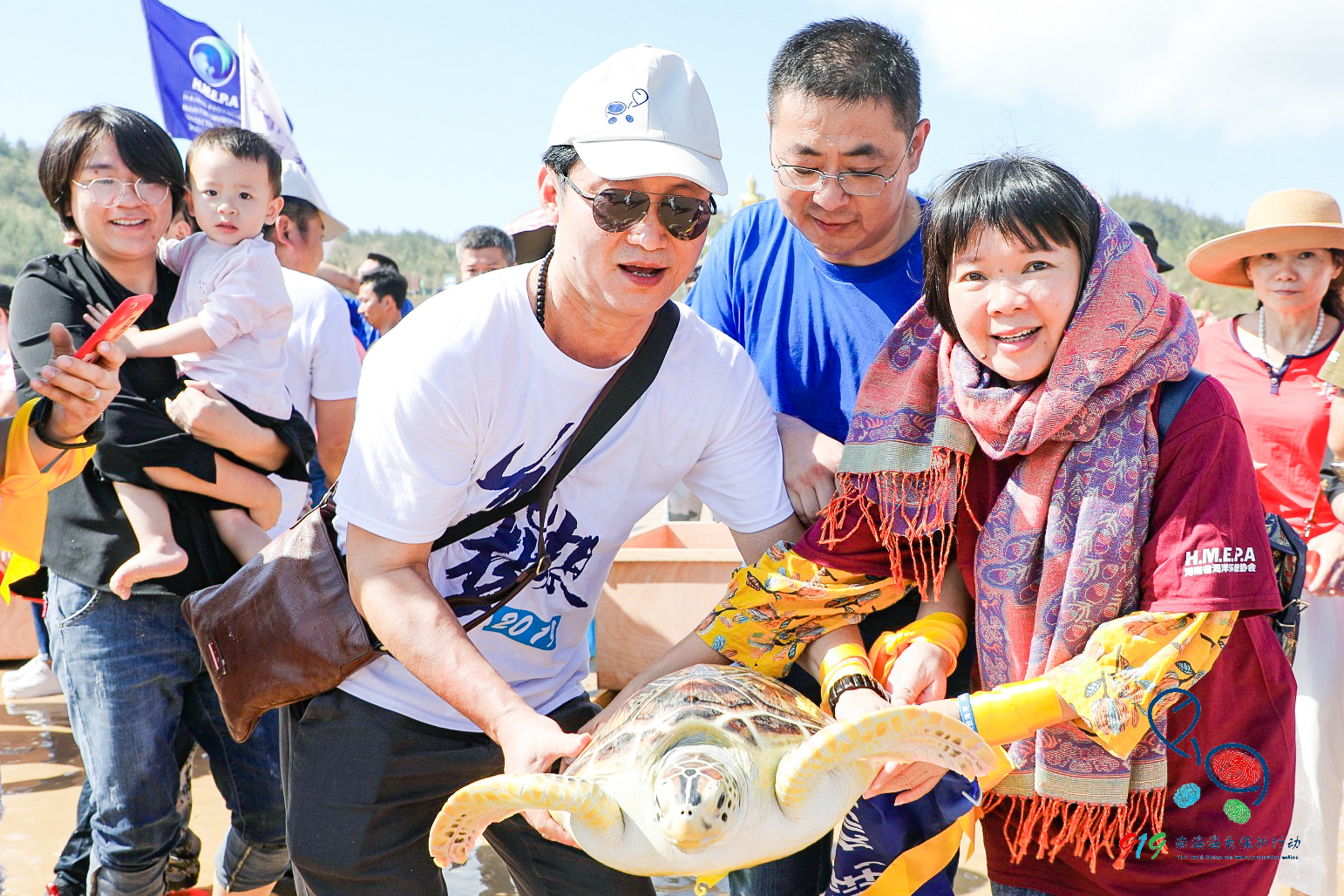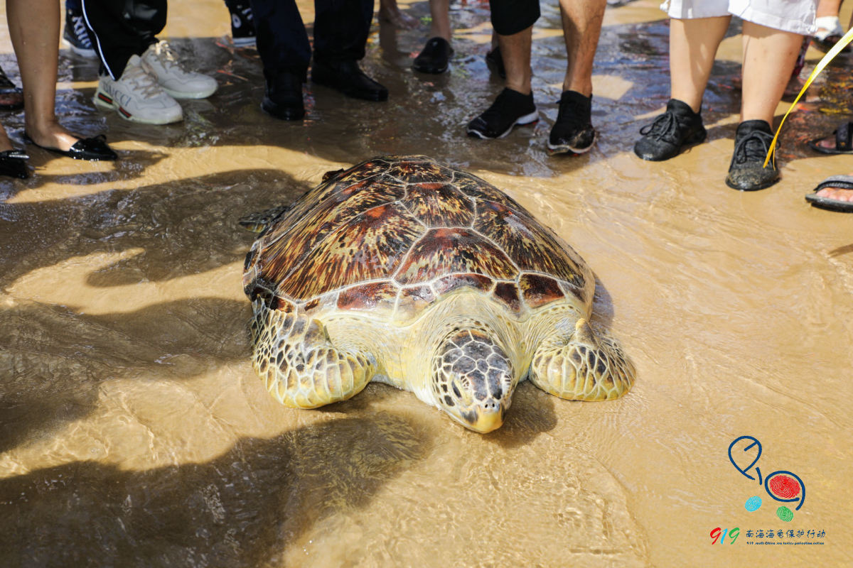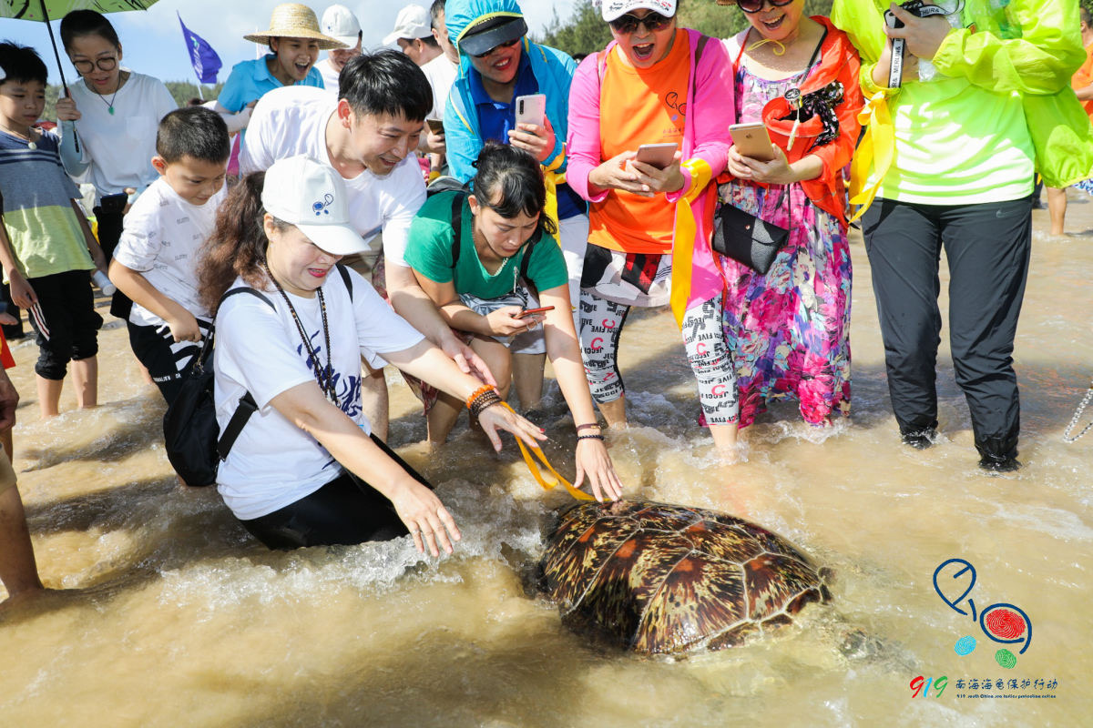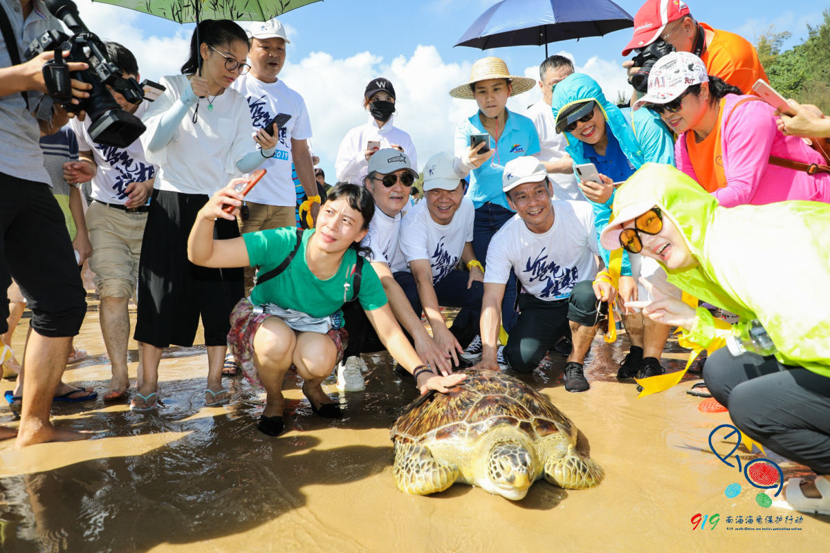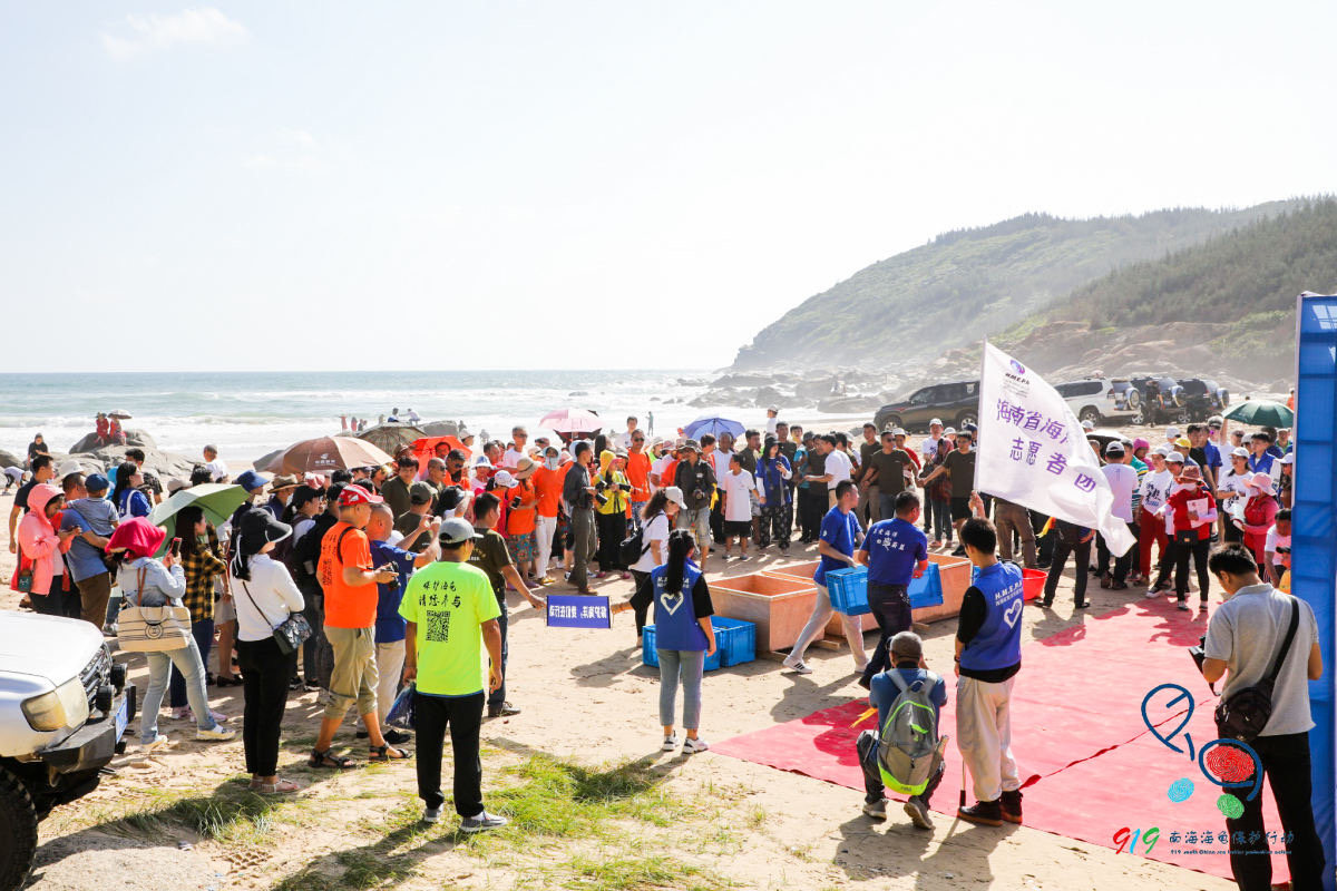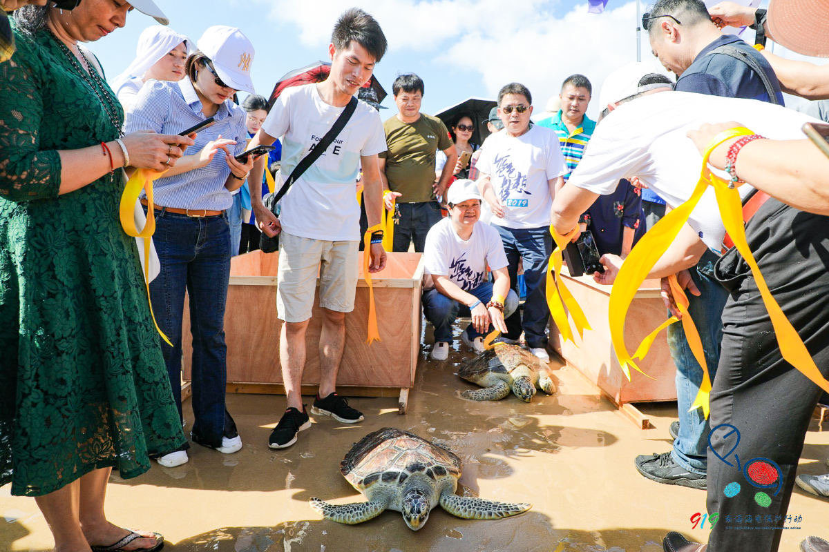 全国各地热爱海龟的志愿者等百余人参加了放龟活动