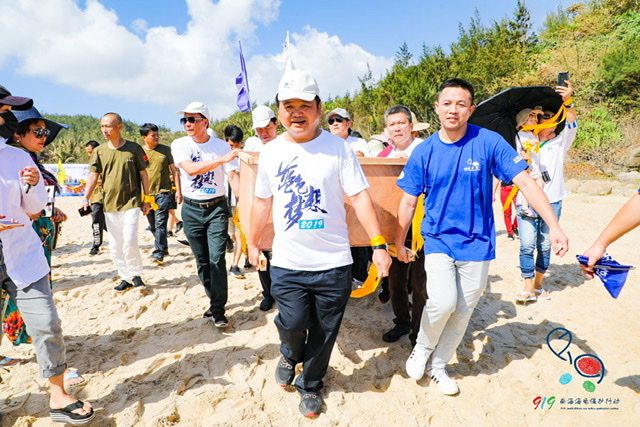 海南省海洋环保协会会长陈慧告诉中华时报记者:2019第五届南海海龟保护放归公益活动的举办,目的是秉承“绿水青山就是金山银山”的发展理念,以实际行动推进海南生态文明试验区建设,提升生态文明建设水平,注重生物多样性保护、倡导“低碳、绿色、健康、环保”的生活方式,让广大民众自觉投身到“倍加珍爱、精心呵护海南的青山绿水、碧海蓝天”行动中来。为保护海龟这一海洋濒危生物,自2015年起,在海南省主管部门和文昌市政府的支持下,海南铜鼓岭国家级自然保护区管理处与海南省海洋环保协会每年都会举办放龟公益活动,活动涵盖海洋环保讲座,海洋知识进校园、进社区和环境清理、拒绝白色污染行动等内容。
