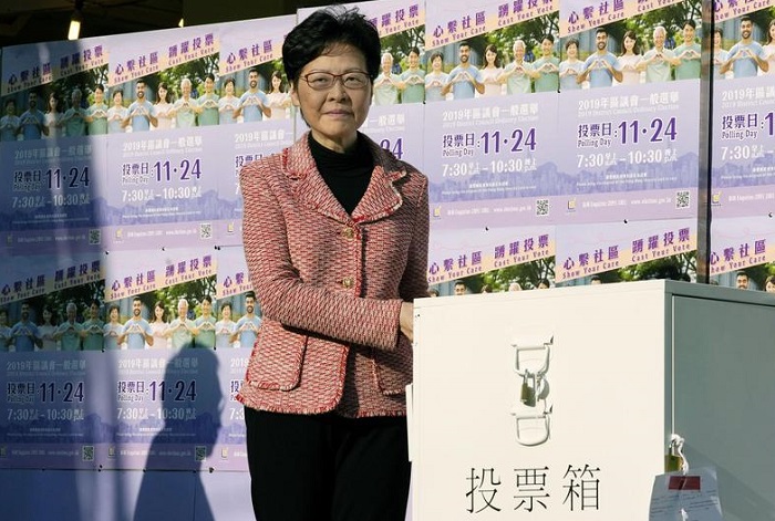 人们普遍认为选举是对香港特首林郑月娥(Carrie Lam)和她背后的中央政府的不信任投票。