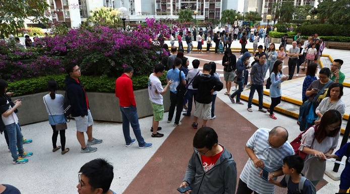 香港选民排长队等待在区议会选举中投下自己的一票。(2019年11月24日)
