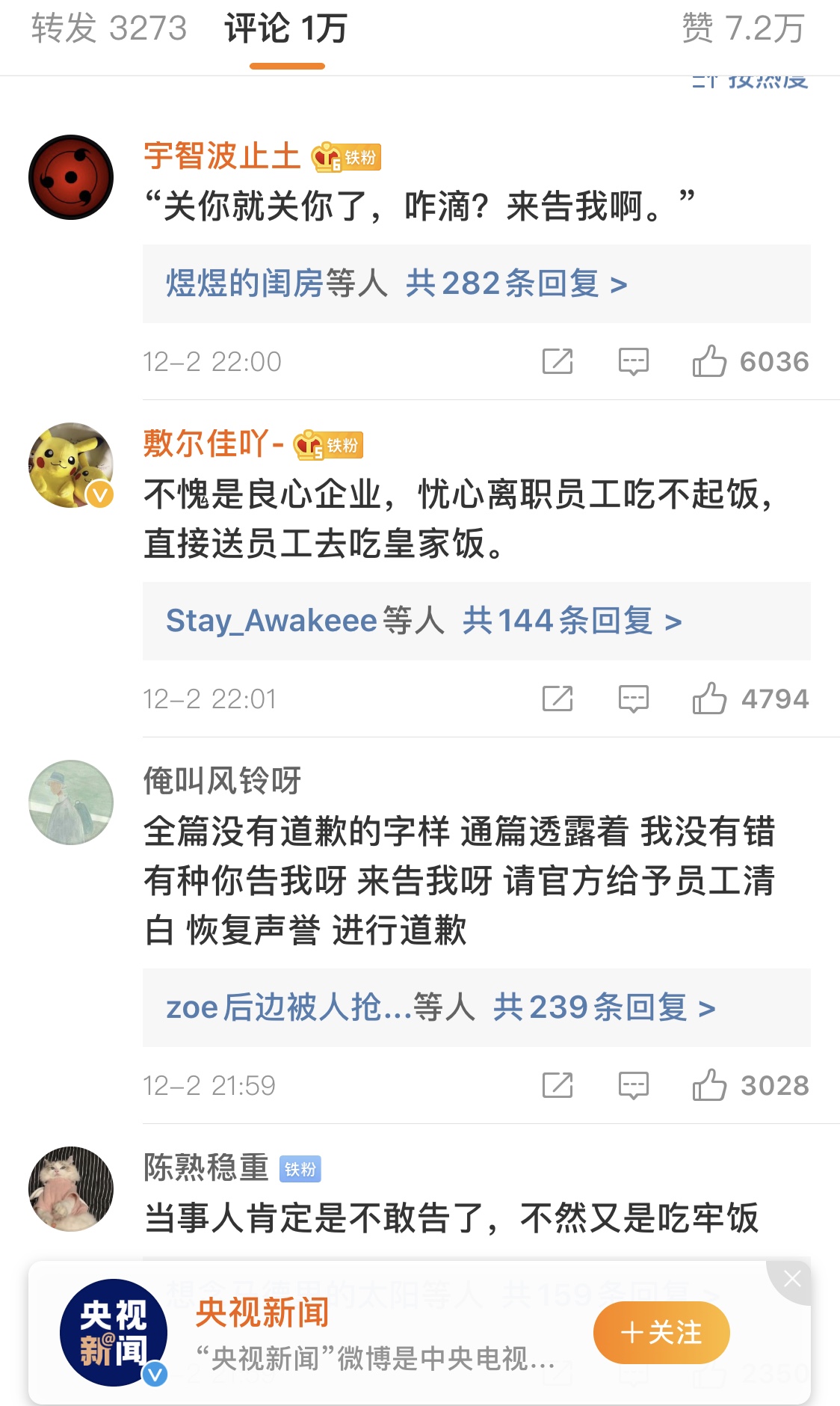 事件引爆中国网民热议,质疑华为“一边呼吁全民爱国挺华为、声援孟晚舟;一边却以黑社会手段对付自家员工”。