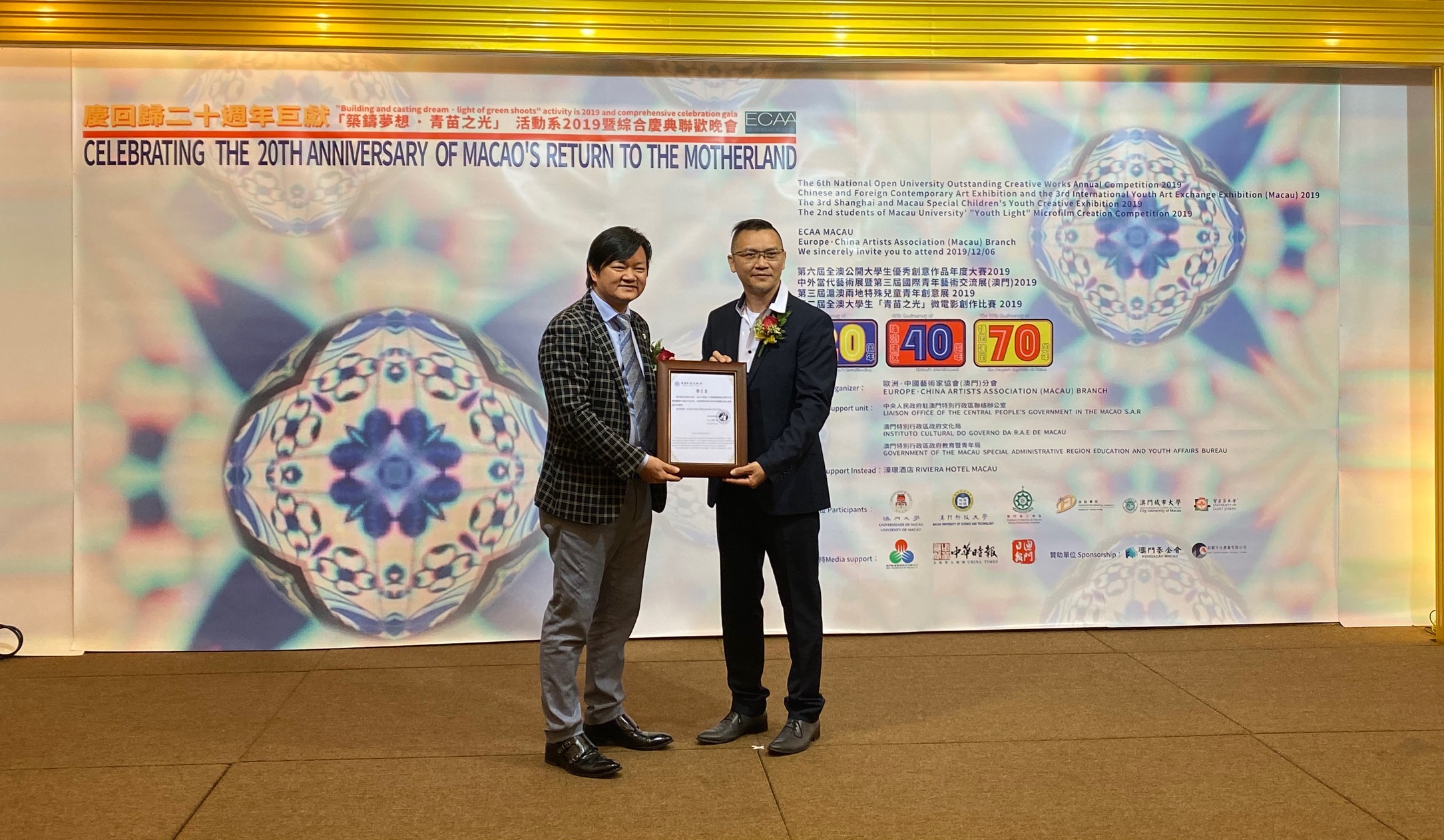 「中華時報消息」由歐洲.中國藝術家協會(澳門) 主辦、全澳大學院校共同參與慶祝澳門回歸二十週年巨獻「築鑄夢想.青苗之光」活動系列2019昨日在澳門舉行。
