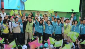 蔡總統和民進黨副總統候選人賴清德,今天下午合體出席台南市競選總部成立大會,受到與會支持者熱烈歡迎,現場擠爆,旗海飄揚,氣氛高昂。