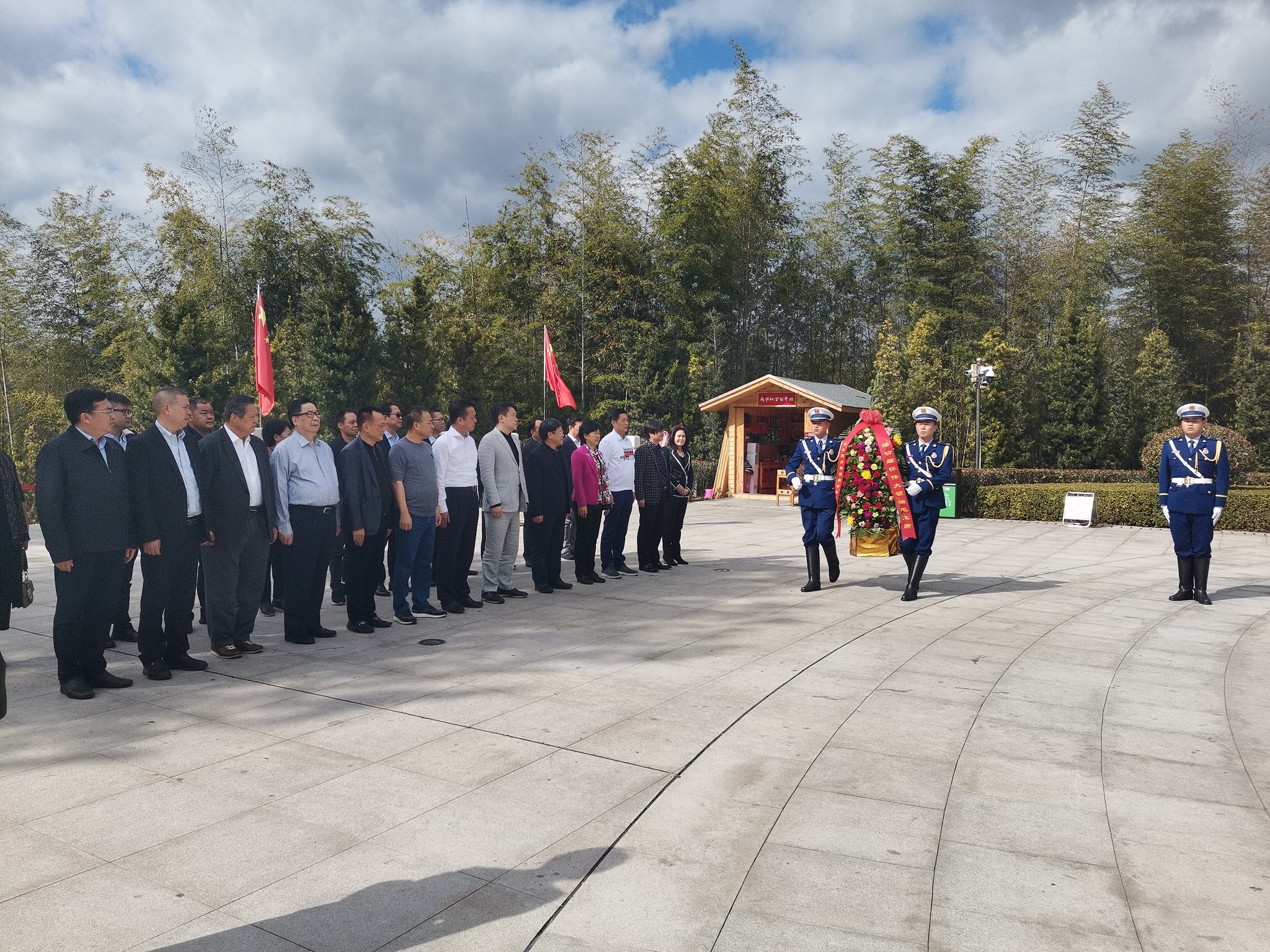 17日上午,参访团一行在龙岩市委常委、统战部部长邓菊芳等陪同下,瞻仰了古田会议旧址并向毛泽东雕像敬献花蓝的活动。
