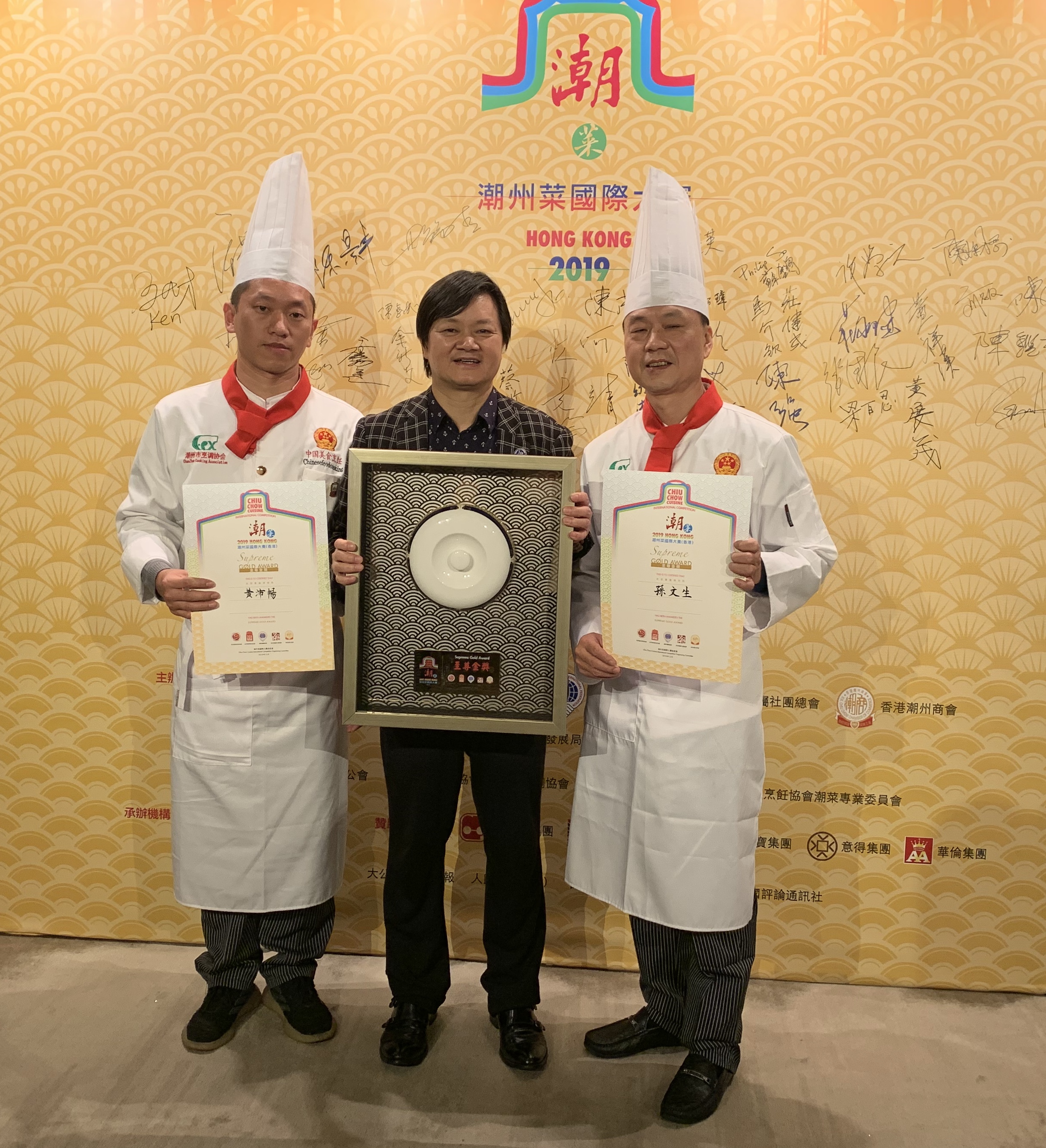 (中华时报/中华新闻通讯社讯)由香港餐务管理协会、世界粤菜厨皇协会、国际潮团总会、香港潮属社团总会、香港潮州商会联合主办的“首届潮州菜国际大赛”于2019年12月17日在中华厨艺学院举行,经过激烈的角逐,来自潮州市烹调协会副会长孙文生摘得桂冠,赢得了(至尊金奖);“三亚烹饪餐饮行业协会”、“滴王匠”代表队等分别获得了银奖,“潮州枫春大排档”代表队、“豪仕凤凰荟”代表队等获得铜奖。