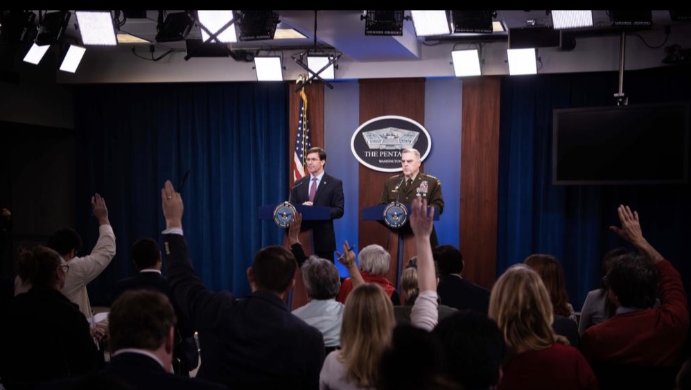 在可能是2019年的最后一场记者会上,国防部长埃斯珀(Mark Esper)和美军参谋长联席会议主席米利(Mark Milley)星期五(2019年12月20日)一起见包括中华时报记者,回顾了他们各自上任后几个月里所做的工作,并展望来年的努力方向。