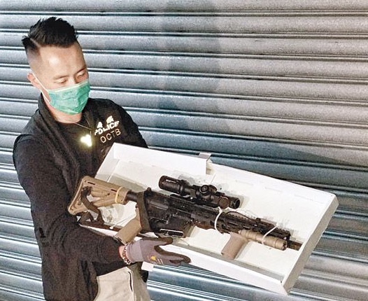 他说,经初步检查后,昨晚检获的AR15长距离步枪相信由不法分子自行组装,内有逾200发子弹,其中61发装于一环形快速入弹器内。他续指,不少不法分子会利用此类枪械,从高位远距离伏击,令人防不胜防。若向人群扫射,会造成严重伤亡。