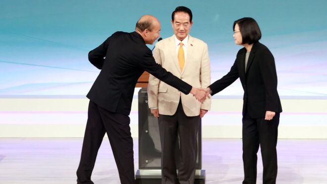 2020台湾台湾大选的三位候选人:民进党的蔡英文、国民党的韩国瑜和亲民党的宋楚瑜于周日(12月29日)进行唯一一场电视辩论。下午两个半小时的辩论分为申论、媒体提问、交叉诘问和结论四个环节。其中“一国两制”、香港示威、《反渗透法》和网军问题成为焦点。