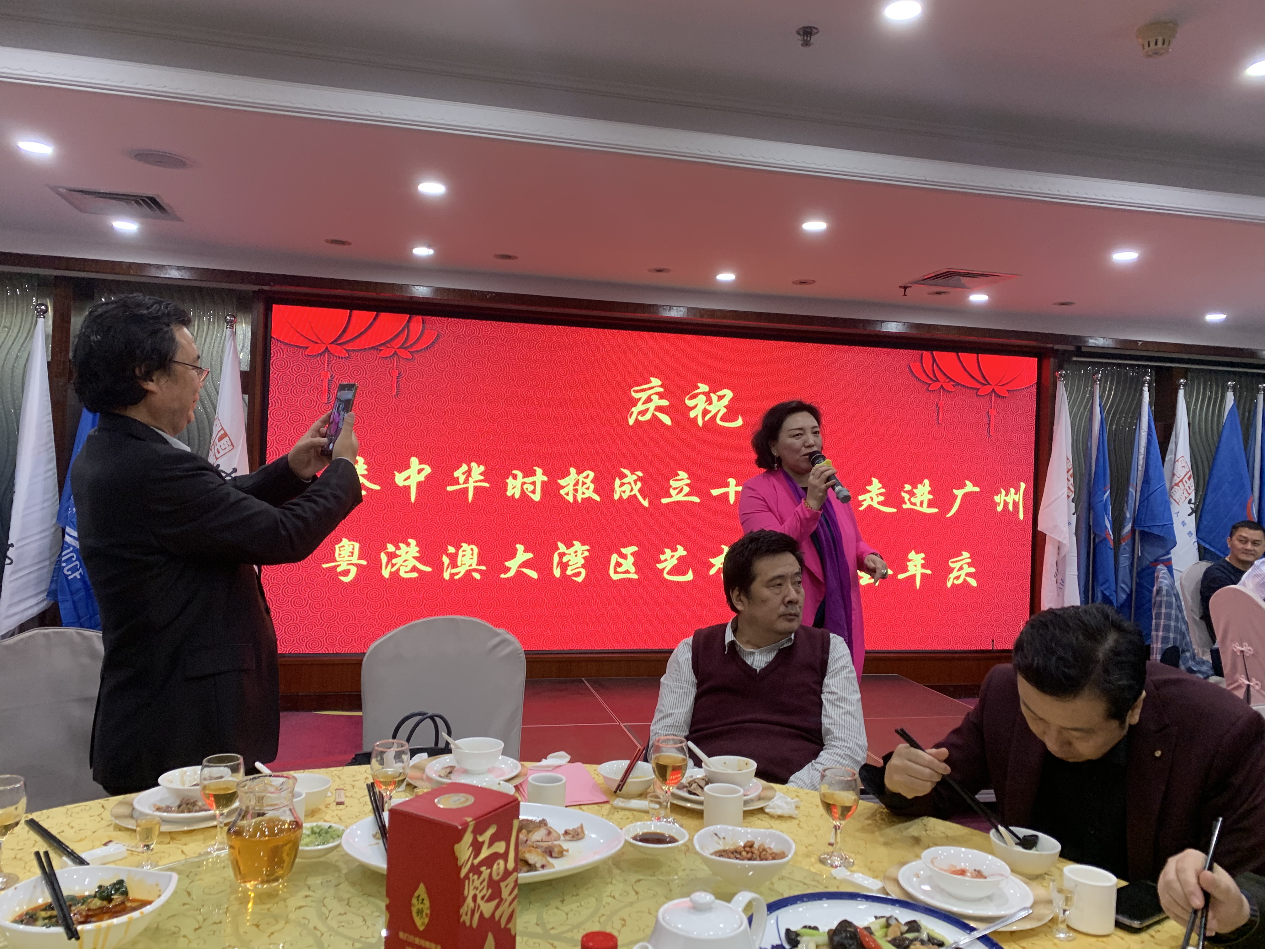 晚宴上,广东省古董文化研究会会长伊有成、广州医科大学原党委书记翁宗亦、中山大学教授钟晓青、澳门法治报副社长刘长生、广东省政协委员许建华、广东省女企业家协会副会长吴淑音、90岁高龄的老艺术家孙老师、乌克兰女艺术家、广州新世纪艺术研究院常务副院长刘玉华、中华时报副社长杨鉴旻等前后登台致辞,畅谈与中华时报和该社社长曾晓辉结缘与交往历程。