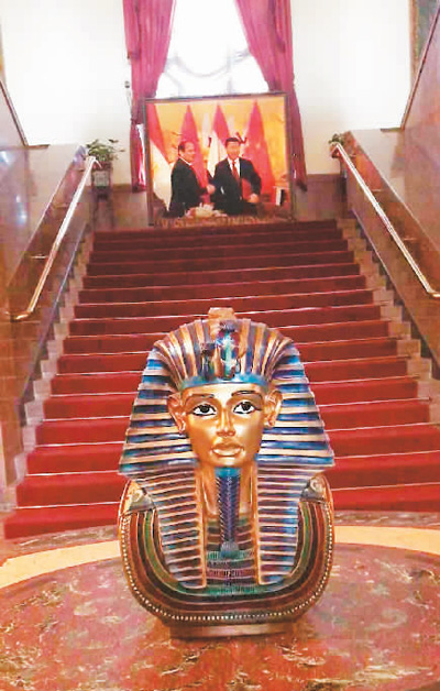 埃及驻华大使馆摆放的埃及法老半身像。 海外网 陆宁远摄