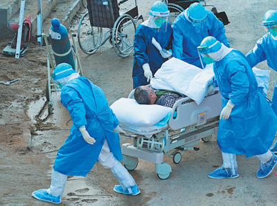 9日,医务人员转运患者。高辉 摄(影像中国)
