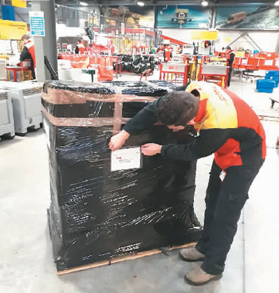 图为葡萄牙电力捐赠的医疗物资正在进行打包运送(三峡集团供图)