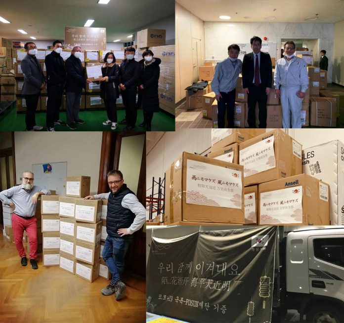 Packages of urgently needed medical supplies donated by China’s Fosun Group were received in Japan, Republic of Korea and Italy. Photo courtesy of Fosun Group.