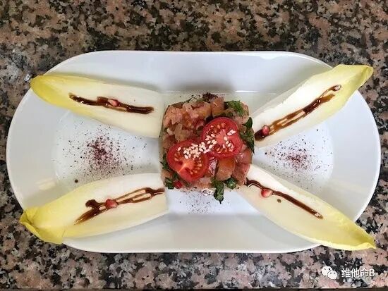 菊苣很像中国的白菜心,小小的白白的,吃到嘴里有点苦味,但是随后会有一丝甘甜流连于味蕾之间。原来,菊苣中含有一些一般蔬菜中没有的成分(有点类似中国的苦瓜),如马栗树皮素、马栗树皮甙、野莴苣甙、山莴苣素和山莴苣苦素等苦味物质,有清肝利胆的功效。