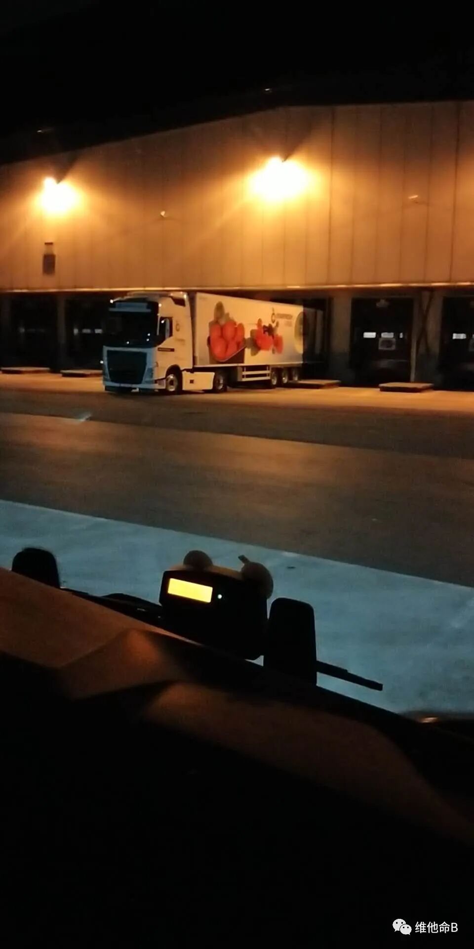 现在孩子爸爸超负荷工作,大卡车司机白天送货比利时蔬菜水果调配中心:Belorta Mechelen。晚上加班加点再次送货。