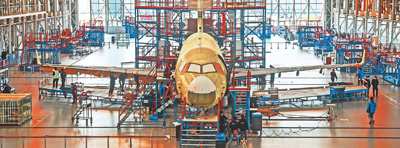 3月6日,工人在中国商飞上海飞机制造有限公司的生产车间内作业。 新华社记者 丁 汀摄