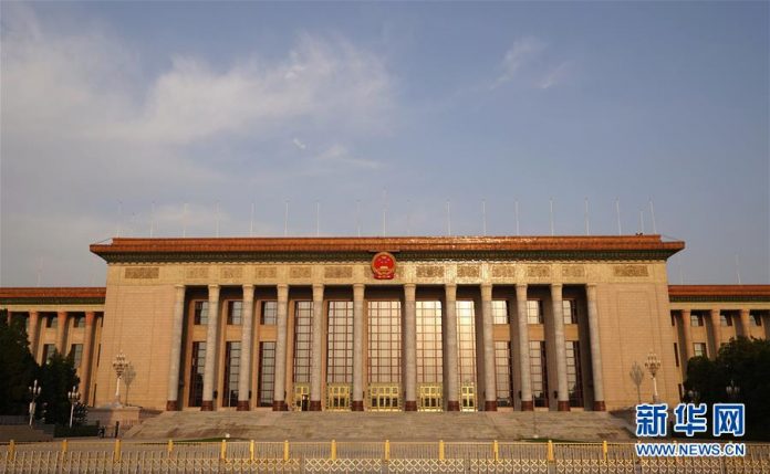 4月29日在北京天安门广场拍摄的人民大会堂。(图源:新华网)