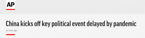 大会开幕之时,不少外媒第一时间推出短消息,对两会盛况进行实时报道。美联社称,“在因新冠肺炎疫情暴发推迟了两个月之后,中国今年最重要的政治活动终于拉开帷幕。”消息一出,被美国广播公司、《时代周刊》、《华盛顿邮报》等各大美媒转发。