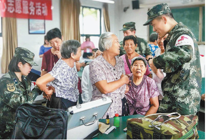 海聚推荐 图片报道(防汛救灾 全力以赴) 21 7 月, 2020 7月19日,在安徽省铜陵市义安区实验小学防汛安置点,武警安徽总队医疗队医生在为群众义诊。 过仕宁摄(影像中国) 7月16日,湖北省恩施市太阳河乡,救援队员正在营救三名被洪水困住的村民。 童秀清摄(人民视觉) 7月18日,在安徽省怀宁县洪铺镇中心校的受灾群众安置点,一位小姑娘给参加抗洪抢险的安徽省军区子弟兵送饮料。 本报记者 史家民摄 《 人民日报 》( 2020年07月21日 第 04 版)