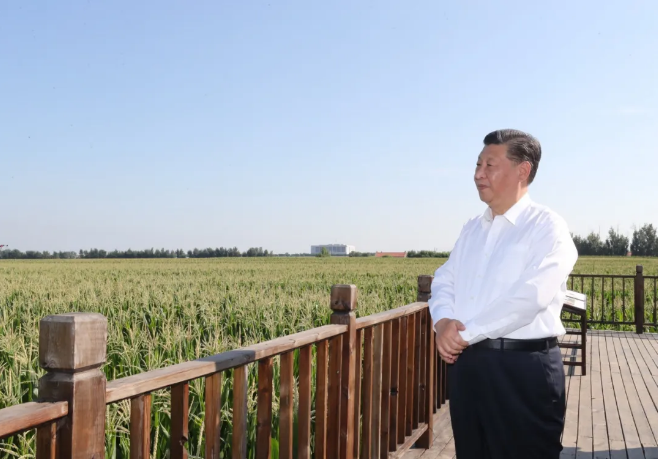 吉林松辽平原素有“黄金玉米带”和“大豆之乡”的美誉,是国家粮食主产区之一。22日下午,习近平首先来到地处松辽平原腹地的梨树县,在国家百万亩绿色食品原料(玉米)标准化生产基地核心示范区地块,听取吉林省和梨树县农业发展和机械化、规模化种植情况汇报。骄阳似火,沃野千里,绿浪滚滚,无人机正在进行喷洒作业。习近平指出,我十分关心粮食生产和安全。今年夏粮丰收大局已定,秋粮要争取有好的收成。吉林要把保障粮食安全放在突出位置,毫不放松抓好粮食生产,加快转变农业发展方式,在探索现代农业发展道路上创造更多经验。