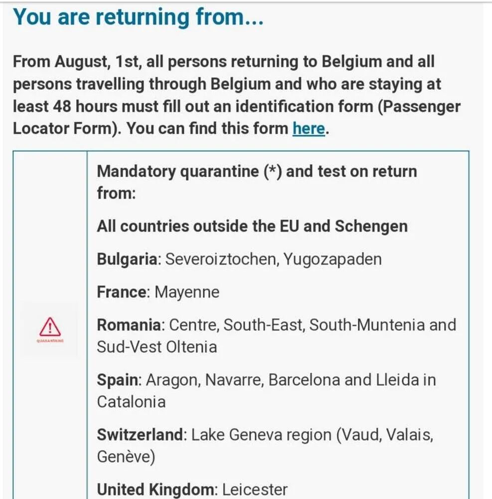 小编借此温馨提示一下,比利时外交部规定8月1日后所有从欧洲及申根区以外返回的旅客,原则上都必须要隔离和检测,意味着,从中国回来的同胞也要遵守此项规定