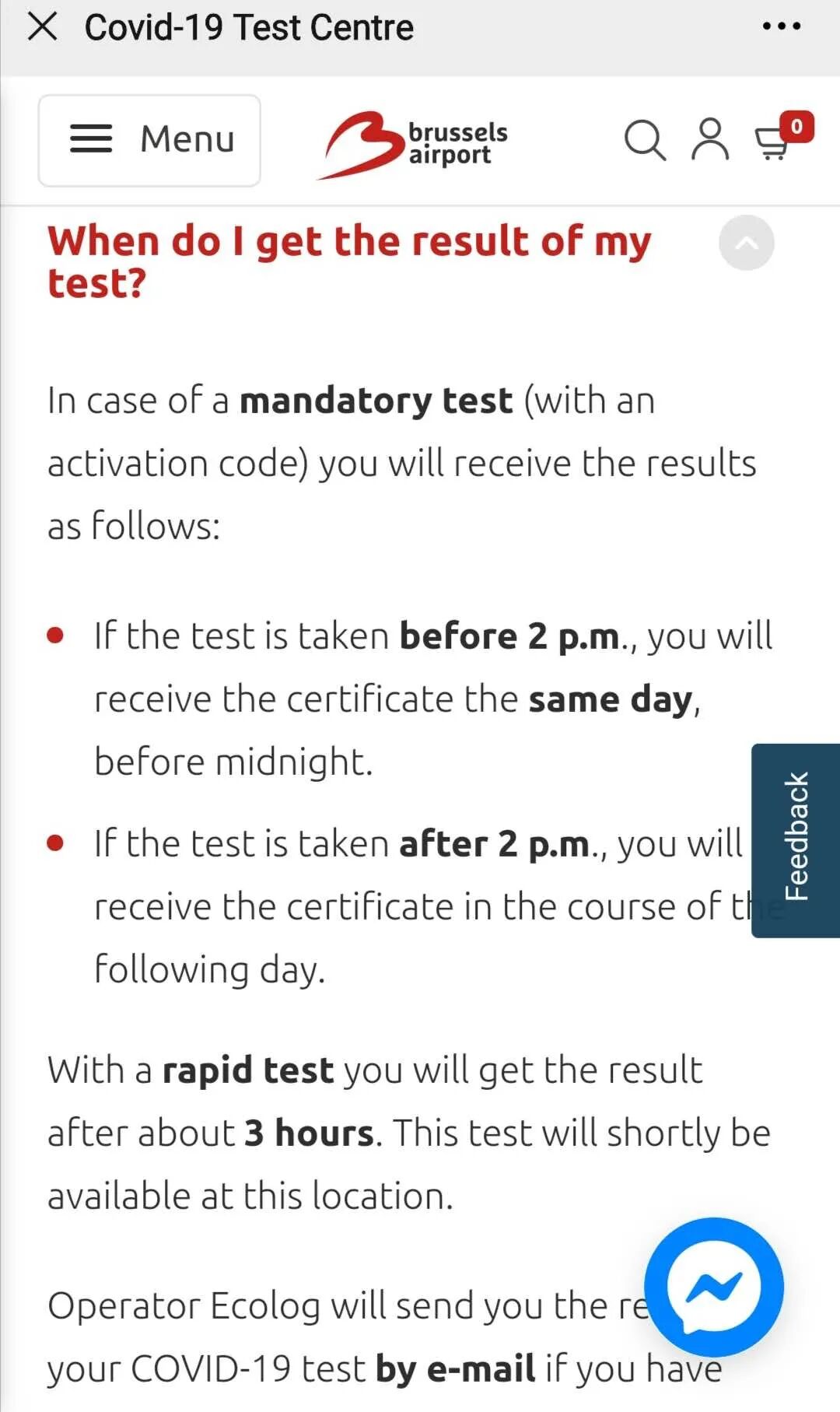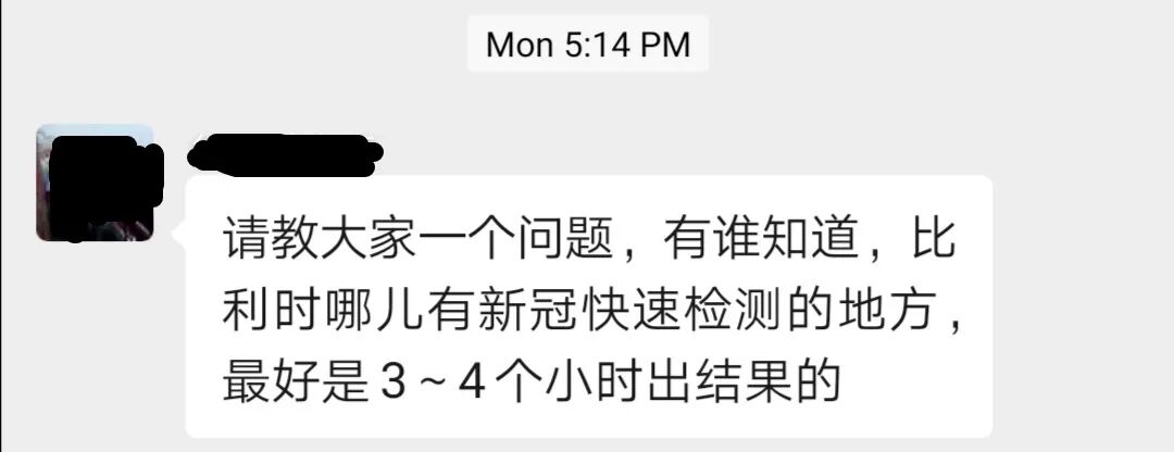 当时距离飞机起飞(15号下午三点)还有不到24小时,普通的检测中心都是在下午五点左右就关门了。本台记者马上想到了刚刚开门的布鲁塞尔国家机场移动检测中心,据网站及电话闻讯得知的信息,那里可以做9小时出结果的快速检测,随后我们第一时间联系了卢同学,建议大家赶紧从Gembloux到飞机场来。