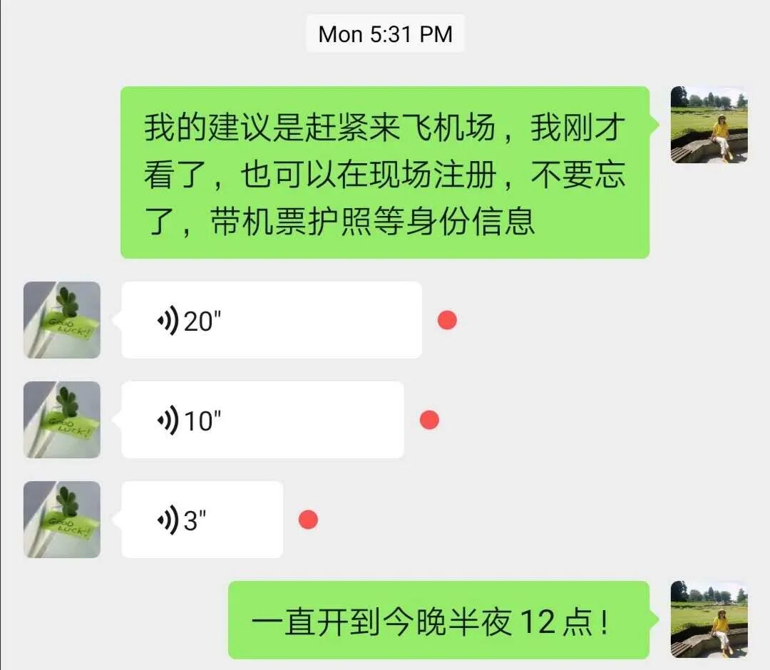 现在万事俱备只欠东风了,我们也是一早从8点半开始就在询问卢同学,距离起飞的时间(下午3点)越来越近了,他们最晚办理登机手续的时间是2点!