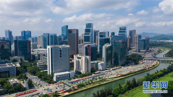 9月27日在深圳市南山区拍摄的大沙河畔的科技园(无人机照片)。新华社记者 毛思倩 摄