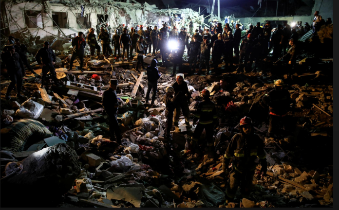 据路透社报道,阿塞拜疆总检察长办公室周六(17日)表示,亚美尼亚两枚炮弹击中了阿第二大城市甘贾的公寓楼,造成12名平民丧生,另有40多人受伤。