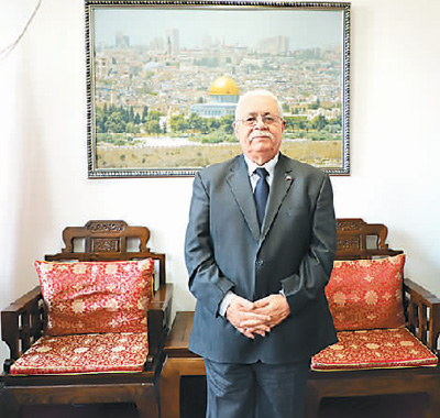 巴勒斯坦驻华大使法里兹·马赫达维近照。  海外网 付勇超摄