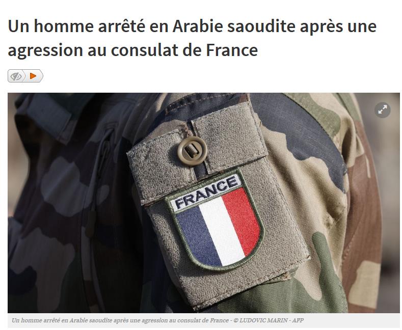 另据消息,今天上午一名沙特男子在沙特阿拉伯西部吉达市的法国领事馆前刺伤一名安全人员后被捕,沙特官方媒体和法国大使馆同时确认。“袭击者在袭击发生后立即被沙特安全部队逮捕。保安人员被送往医院,他的生命没有危险。”法国大使馆在声明中写道。