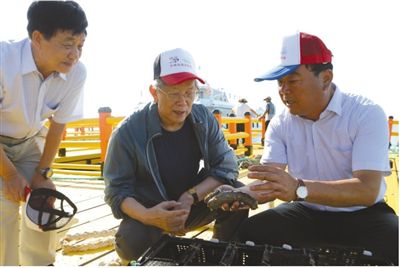唐启升(中)考察山东省荣成市东楮岛海洋牧场与休闲渔业。 吴思强摄
