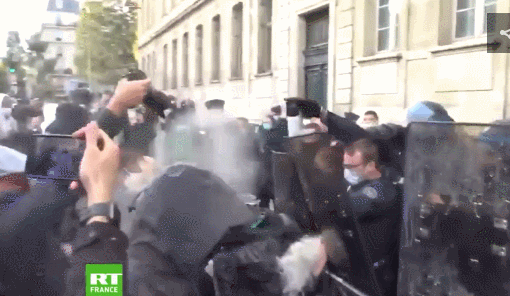 海外网11月4日电 今日俄罗斯电视台4日报道称,当地时间3日,法国巴黎数百名高中生抗议学校在防疫措施不足的情况下开学,他们用垃圾桶将校门堵住,被防暴警察使用催泪瓦斯和胡椒喷雾驱离。