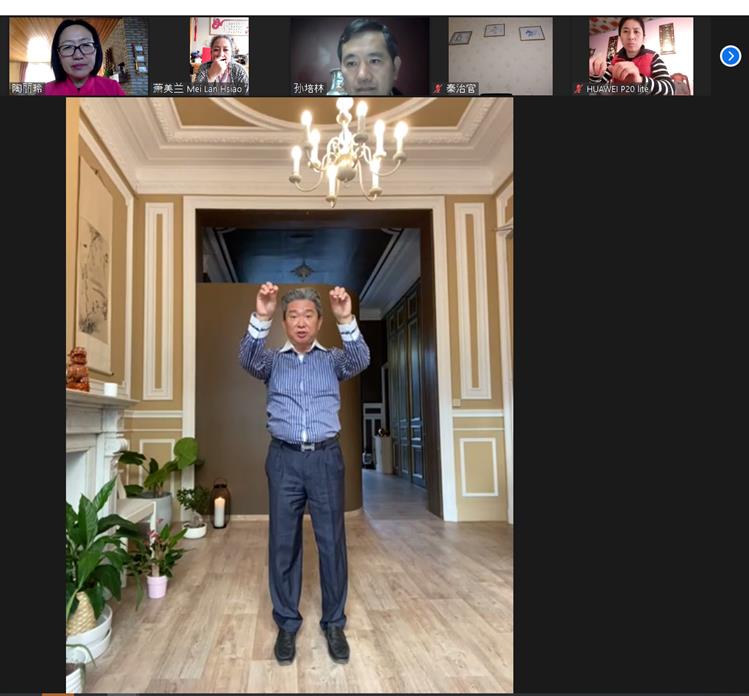 (本平台消息)11月7日下午,比利时中医药联合会首次举办的线上气功抗疫健身活动圆满成功。包括使馆使团,在比中资企业代和来自旅比侨界的20多位会长以及各协会健身气功爱好者们,准时相聚在云端,为强身健体,抗疫防毒身体力行。活动由中医药联合会秘书长孙培林主持,特邀三位气功专家主讲,线上专家示范,线下学员们细心体会学练,中间穿插提问互动,气氛温馨又热烈。大家纷纷表示,受益非浅!