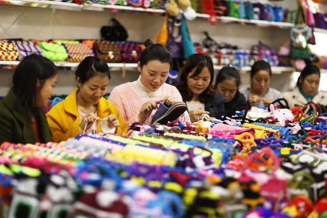 11月22日,在贵州省赤水市长期镇康桥社区,当地群众在扶贫车间钩织产品。(图/新华社)