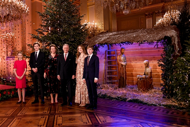 菲利普国王和玛蒂尔德王后想在这个特殊的时期让传统的皇宫圣诞节庆祝继续,这是一场“孤单”的音乐会,没有观众,舞台上摆放了隔离板。但是,今年的皇宫“镜厅”却也显得格外富丽堂皇,非常温暖,由比利时知名艺术家Charles Kaisin亲自设计布置,用“千纸鹤”挂满了金灿灿的舞台。