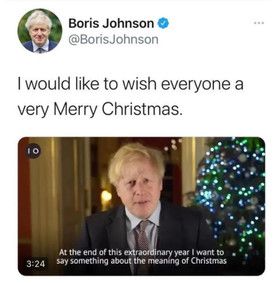 在英国与欧盟达成脱欧协议后,英国首相约翰逊在推特上发布了一则长约三分半的视频。视频中,约翰逊谈到了圣诞节因疫情所受到的影响,以及疫苗所带来的“希望”,约翰逊还在镜头前展示了这份脱欧协议。约翰逊还称,这个协议将成为今后英国与欧盟保持开心、成功和稳定关系的基础。(来源:环球时报)